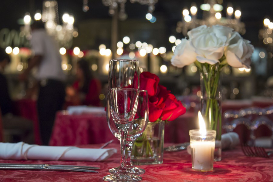 Si, era un espacio para los enamorados. Queríamos que fueran cenas intimas, románticas, pero más que nada, diferentes. La experiencia era única. Colocamos diez mesitas, manteladas en satines rojos, y de las vigas caían candelabros delicados. Fue así que los invitados disfrutaron su noche, en el destello de un mar de candelas y rosas, al son de un trio de cuerdas, envueltos y enamorados.